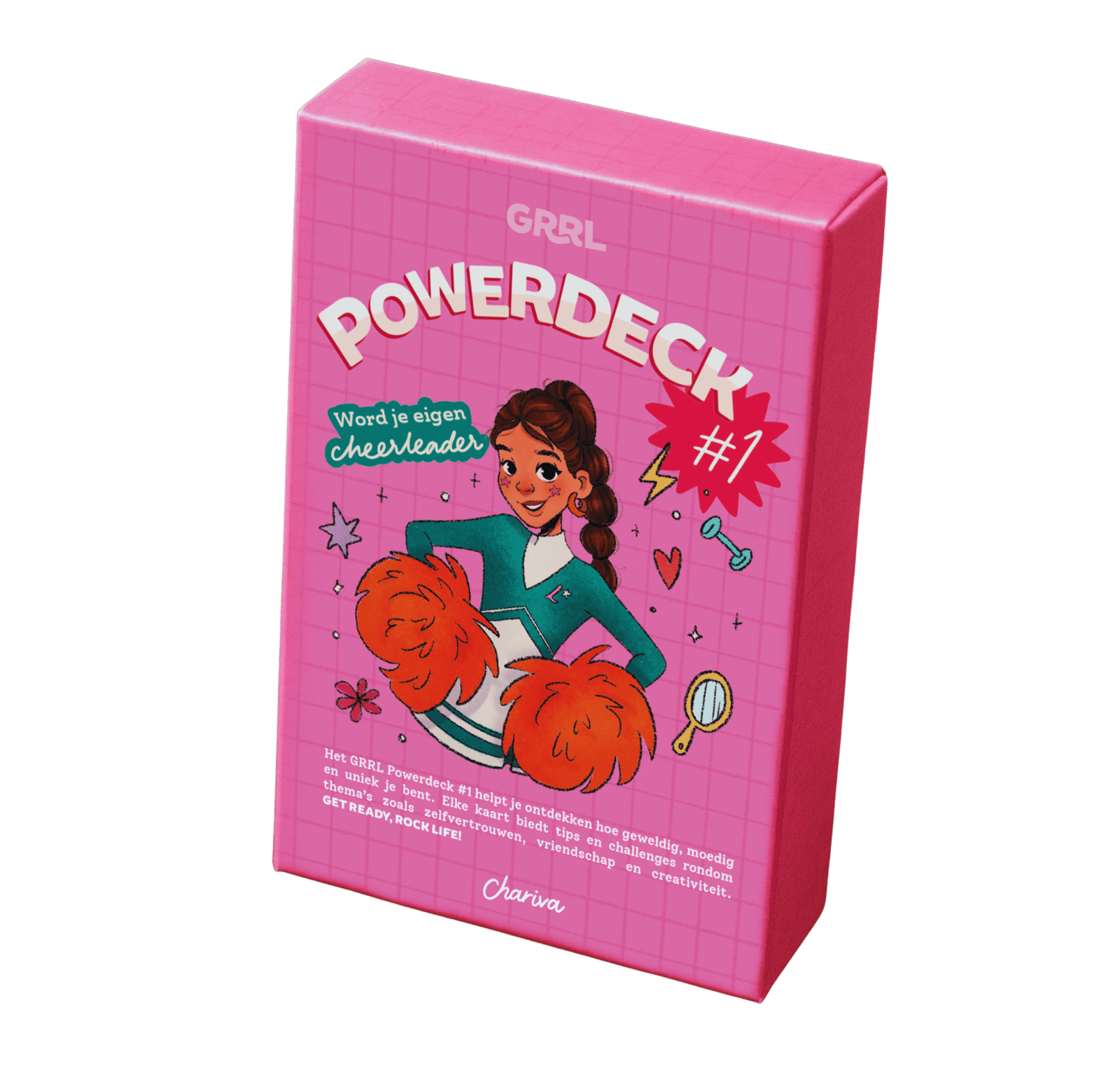 Ga voor een dagelijkse dosis power in een doosje. Het GRRL Powerdeck #1 zit boordevol kleurrijke kaarten die haar uitdagen, inspireren en laten lachen. Zo leert ze zichzelf én een ander beter kennen. Elke kaart geeft haar een mini-missie, een slimme tip of een verrassende gedachte over thema’s als zelfvertrouwen, emoties, vriendschap en brainpower. Trek er één per dag, of juist als je zin hebt in een positieve boost.